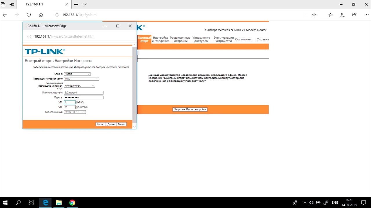 Рассмотрим настройку TP-Link TD-W8901N для провайдера Ростелеком и похожих ADSL-подключений. Чтобы выполнить работы, нужно: